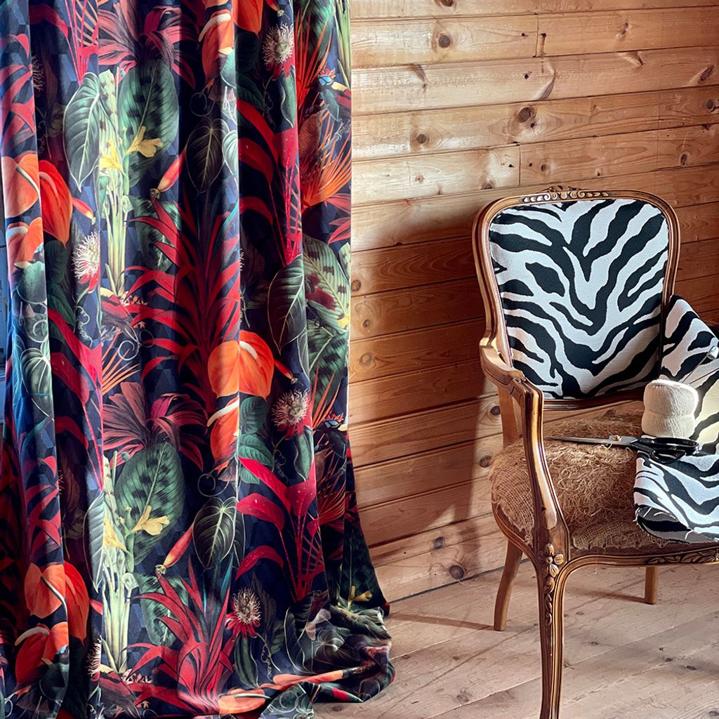 Beskrivning av Dark jungle lyx sammetsgardiner
