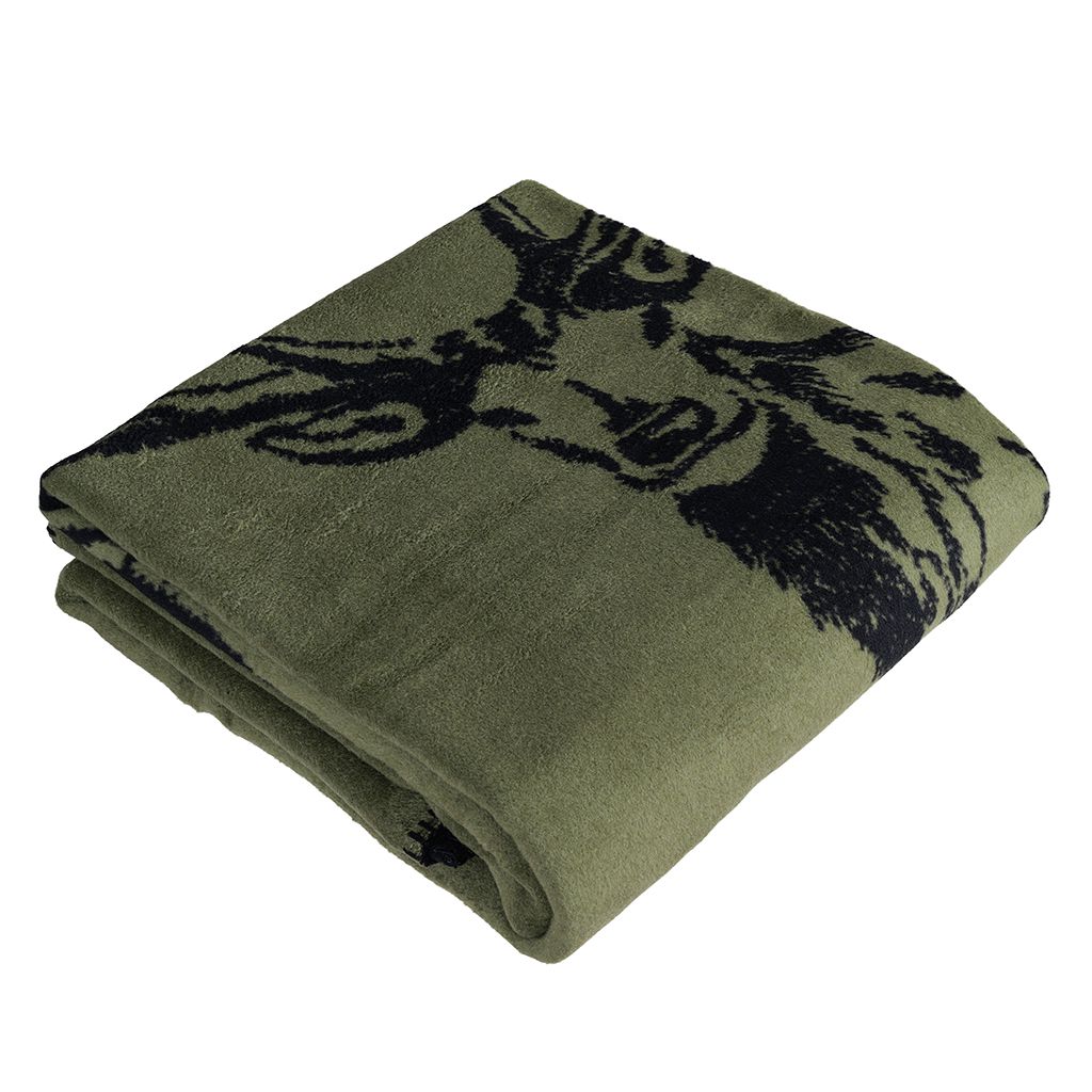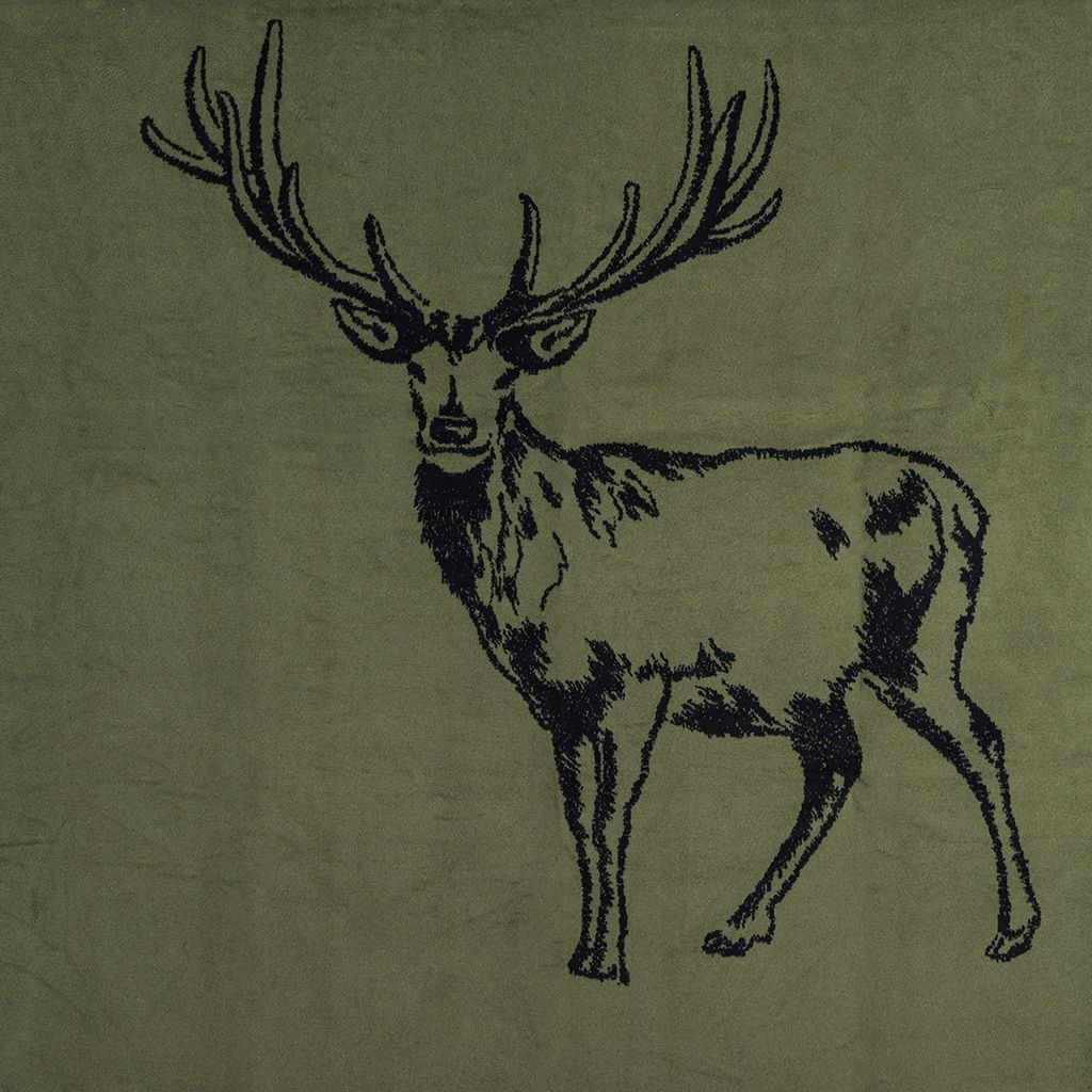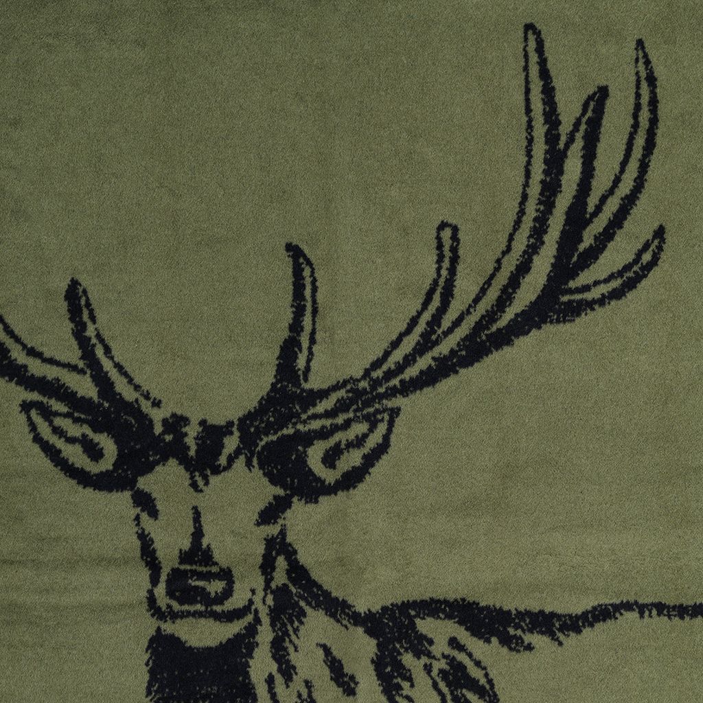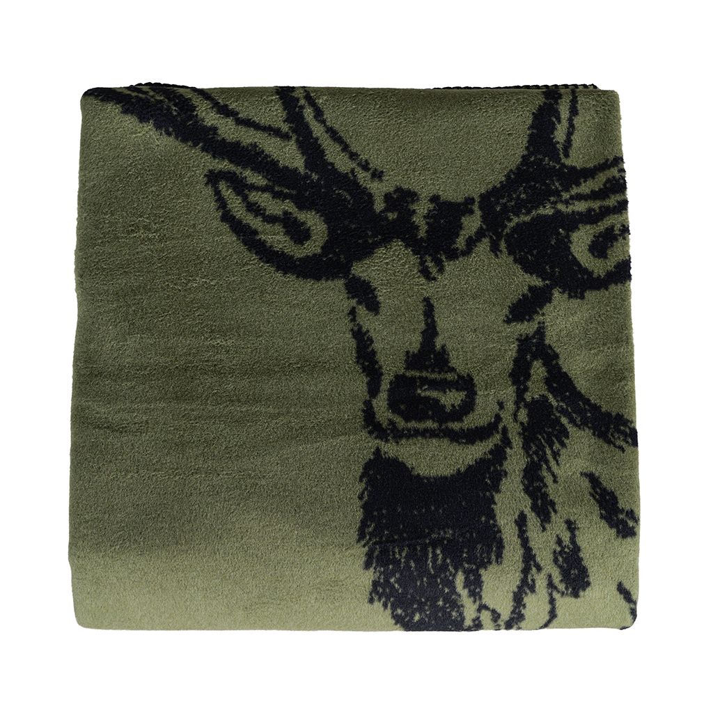 En mjuk och stilren filt i grönt med ett klassiskt hjortmotiv. Tillverkad i Tyskland av en hållbar mix av bomull och polyester, varav en stor andel återvunnet material. Perfekt för sängen, soffan eller som en dekorativ detalj i hemmet.
