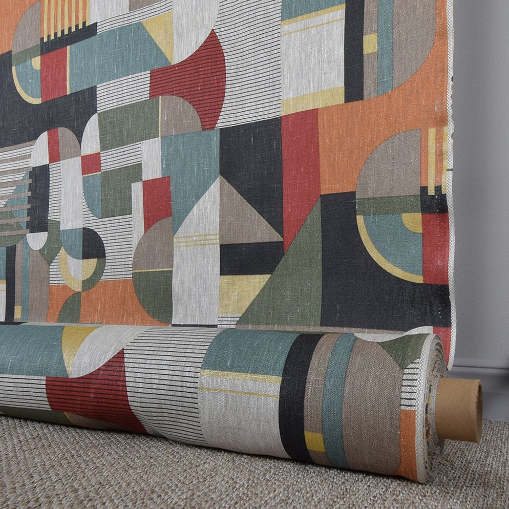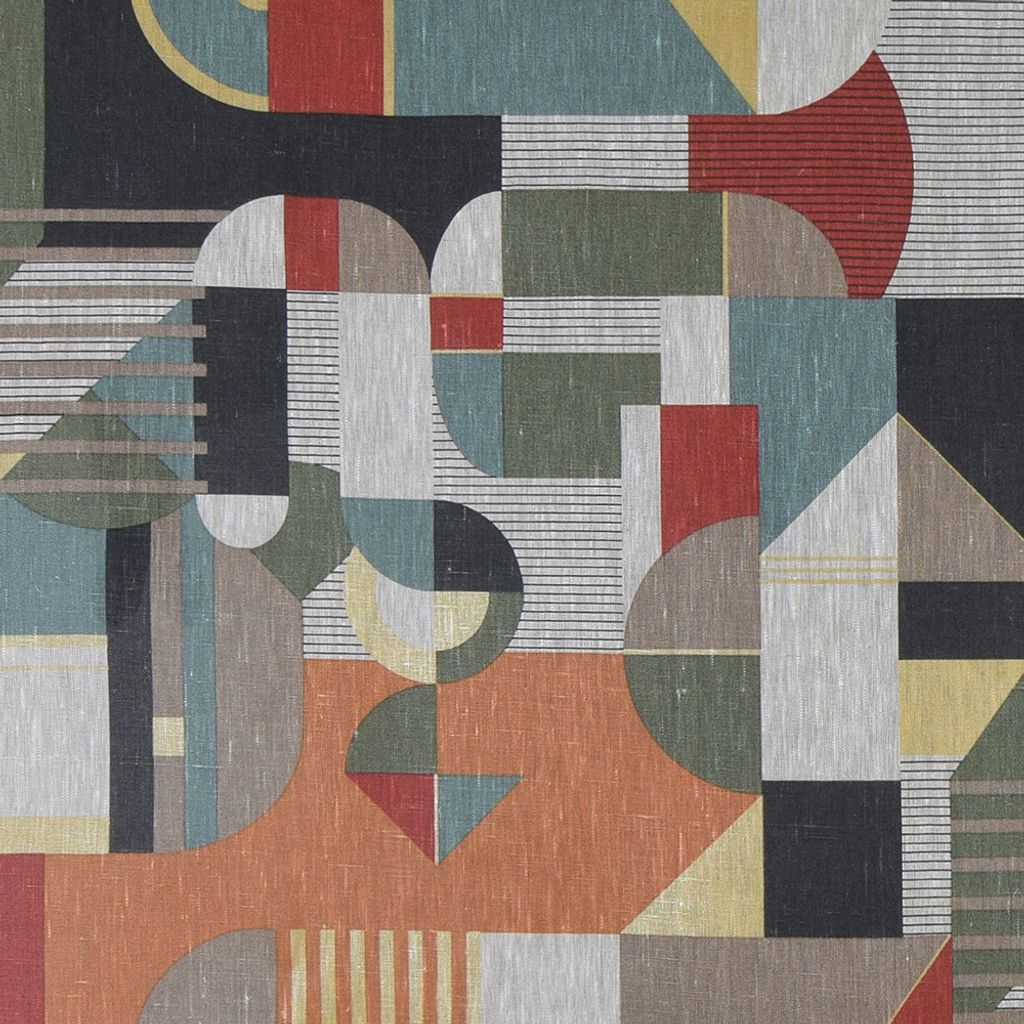 Högkvalitativt linnetyg med ett unikt abstrakt mönster och snygga färger. STANDARD 100 by OEKO-TEX®