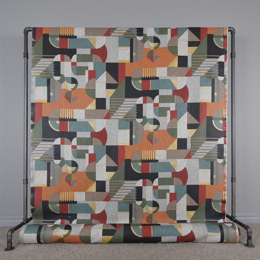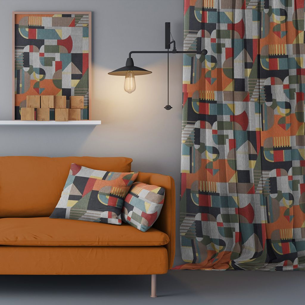 Ge ditt hem en modern touch med detta linnetyg i ett unikt abstrakt mönster och snygga färger. Tillverkat med högsta kvalitet och certifierat enligt STANDARD 100 by OEKO-TEX®, vilket garanterar att det är fritt från skadliga kemikalier. Perfekt för gardiner, kuddar och andra heminredningsprojekt.