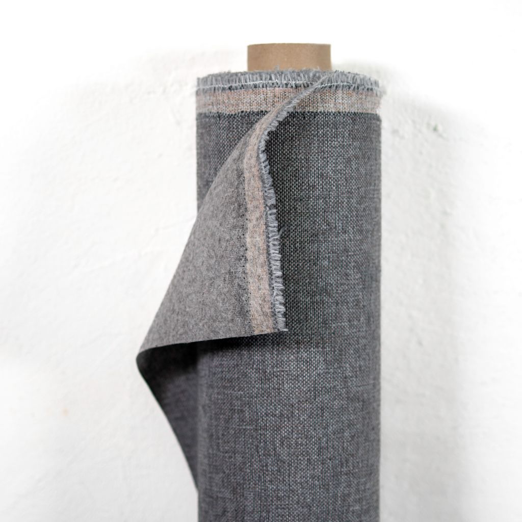 Högkvalitativt mörkgrått möbeltyg med en vacker tvåtonig struktur och imponerande hållbarhet. Ge dina möbler en modern touch med detta stilfulla tyg.