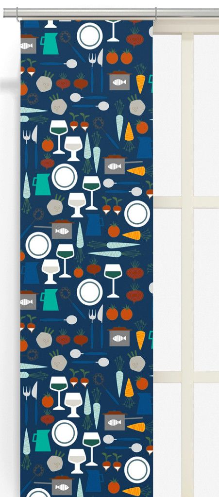 Mönstret Dinner med köksredskap och grönsaker från Arvidssons textil