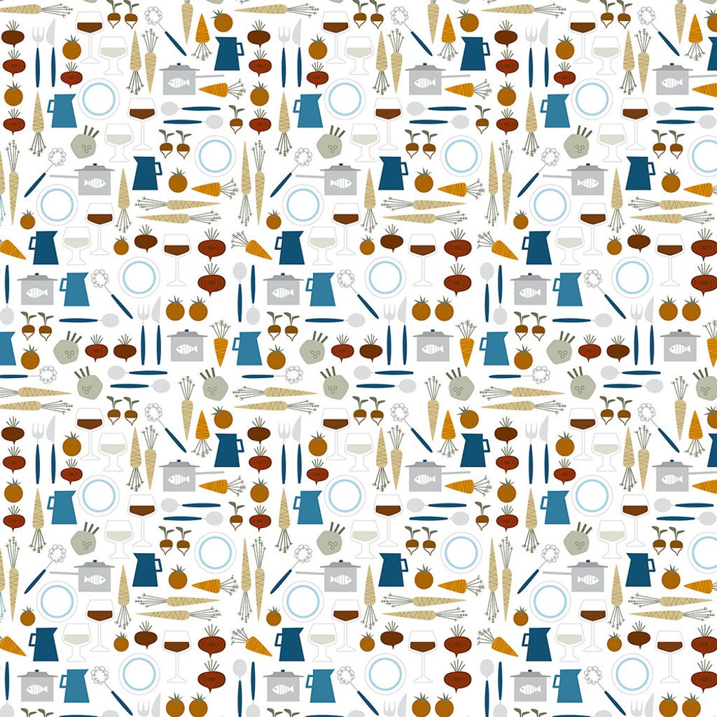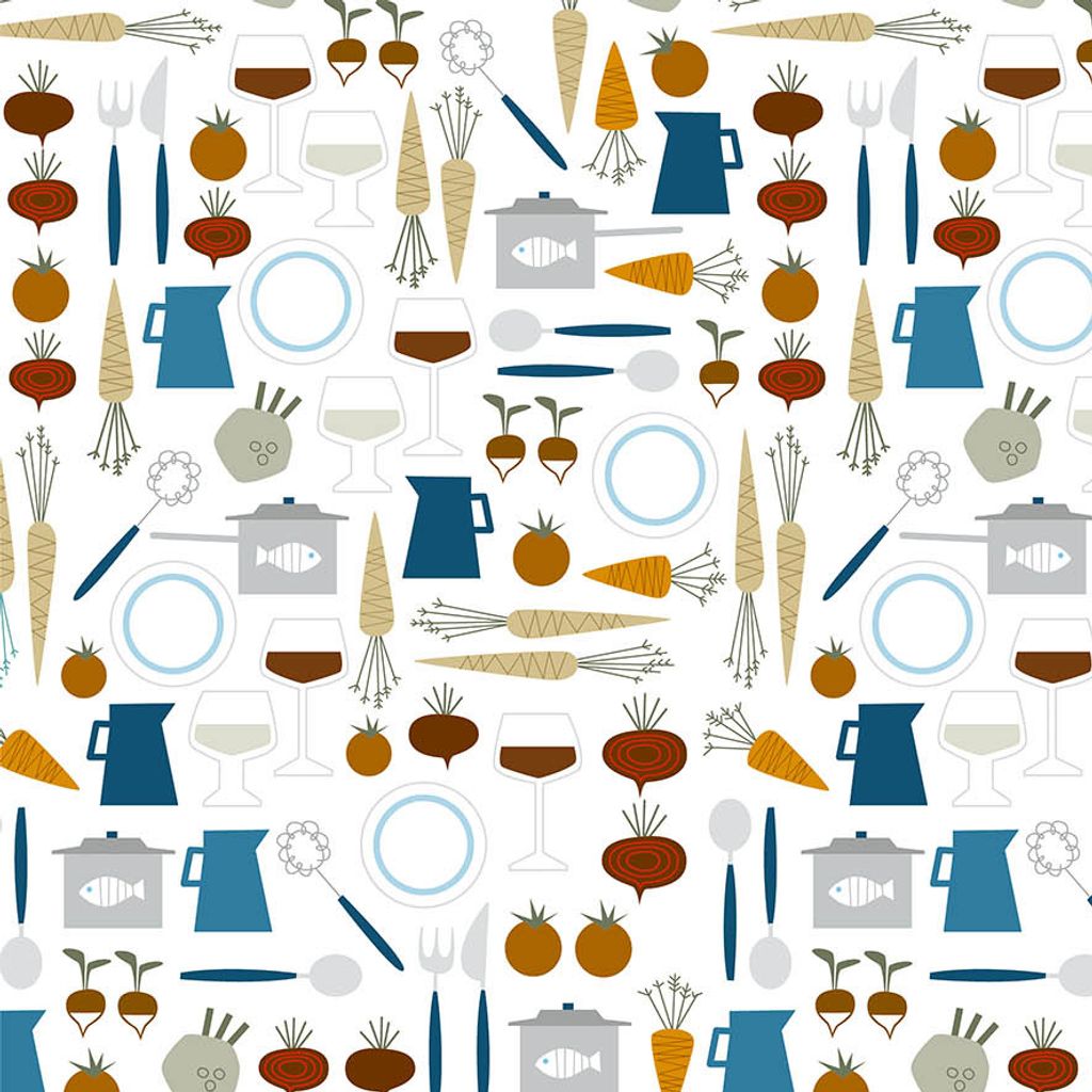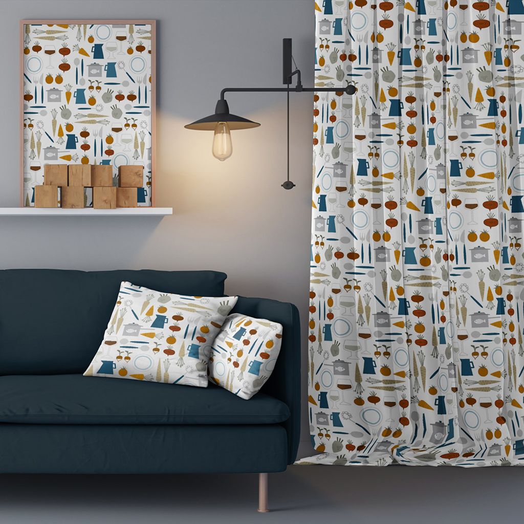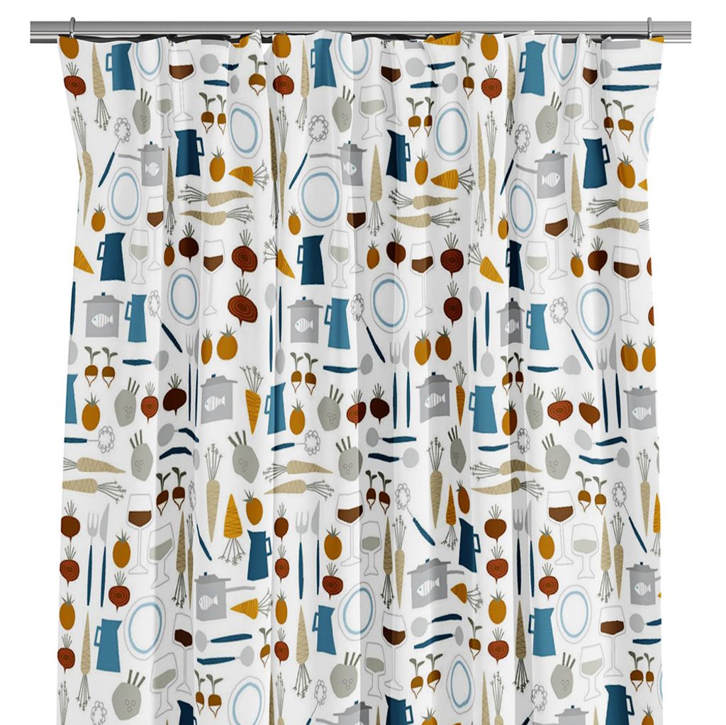 Inredningstyg med köksgeråd och grönsaker, passar till gardiner och kuddar mm