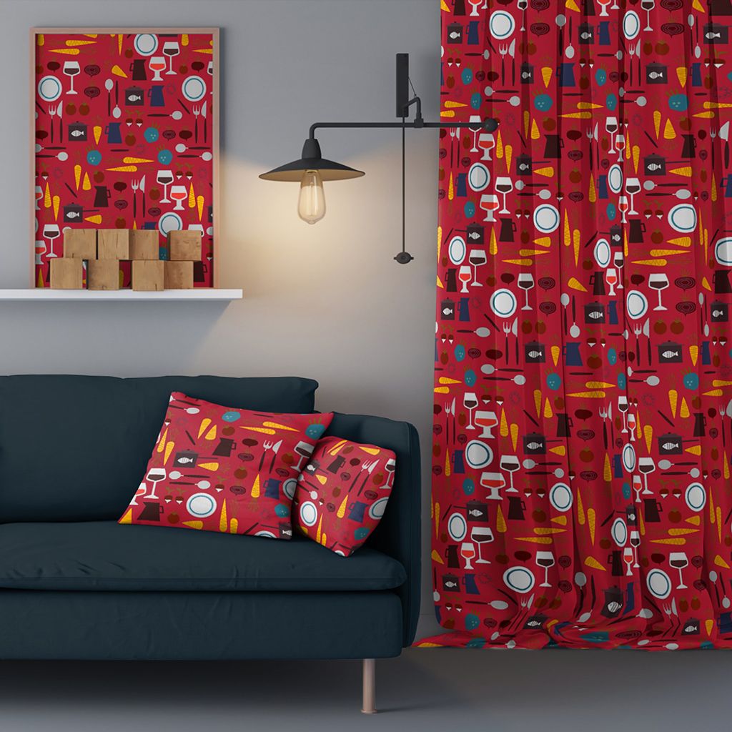 Beskrivning av Dinner röd gardiner