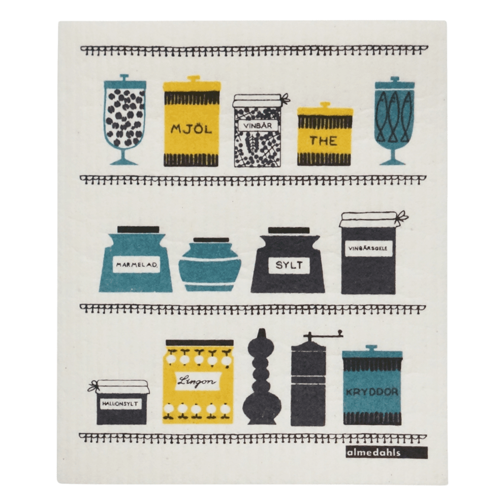 Disktrasa med syltburkar i petrol och ockra, miljömärkt (FSC-certifierad)