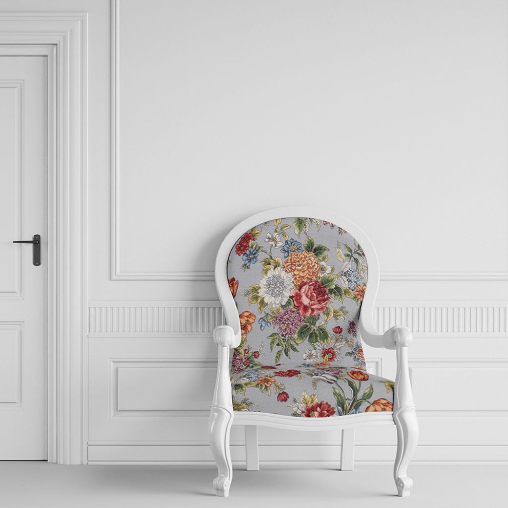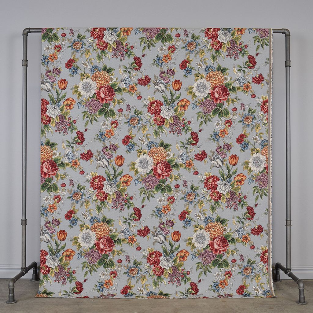 Dolores grå blommigt möbeltyg