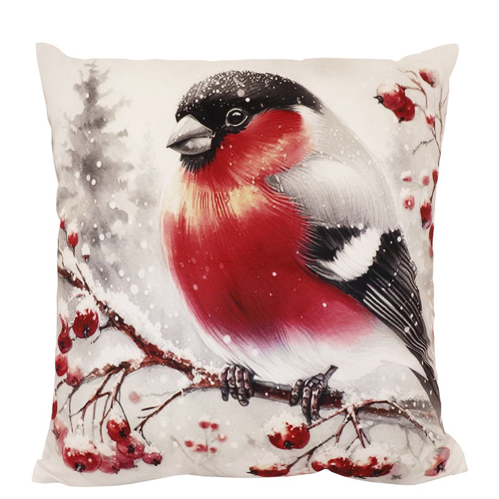 Domherre kuddfodral med sammetskänsla är ett mjukt och stämningsfullt kuddfodral med ett vackert vintermotiv av en domherre bland snö och röda bär. Ett dekorativt inslag som ger hemmet en varm och klassisk jul- och vinterkänsla.
