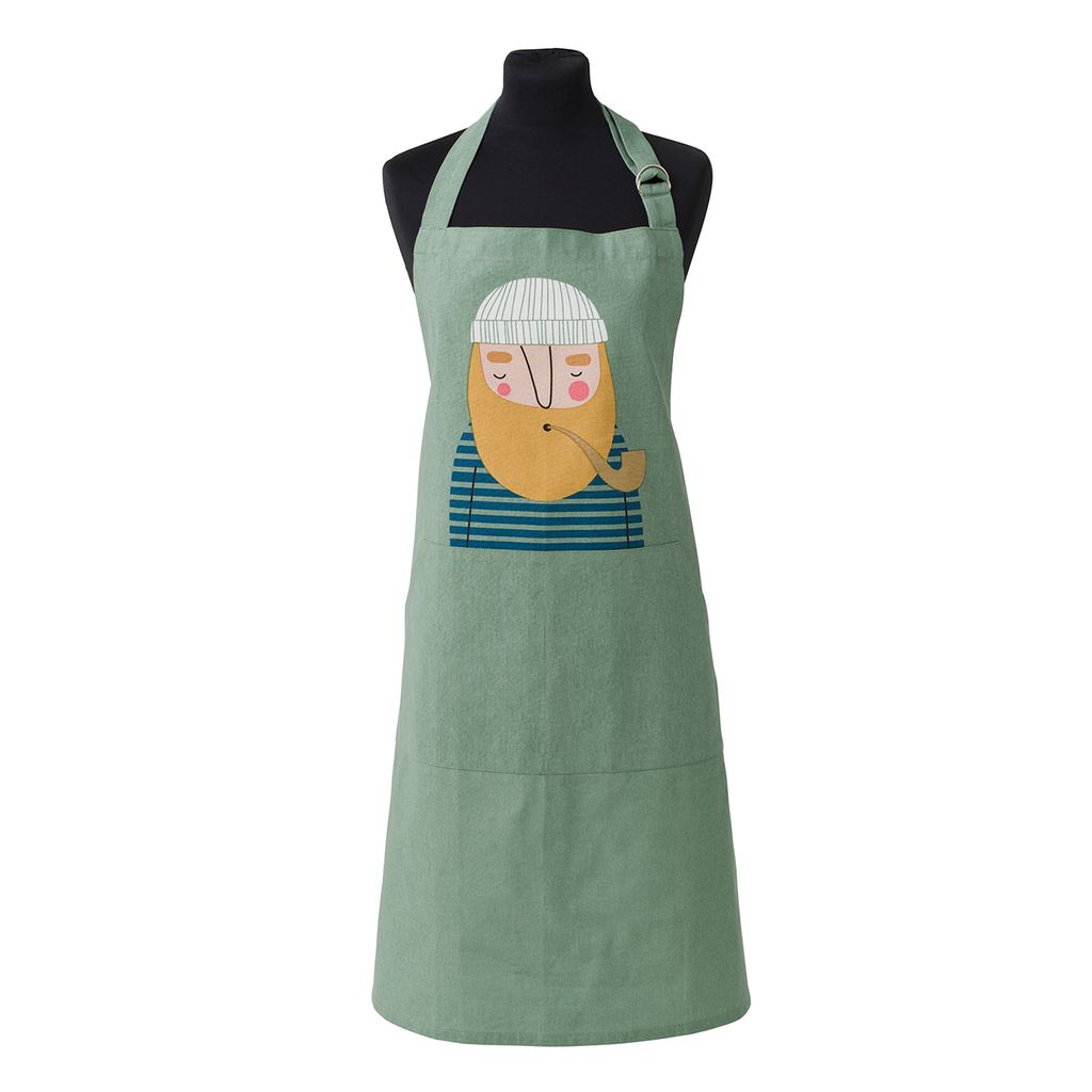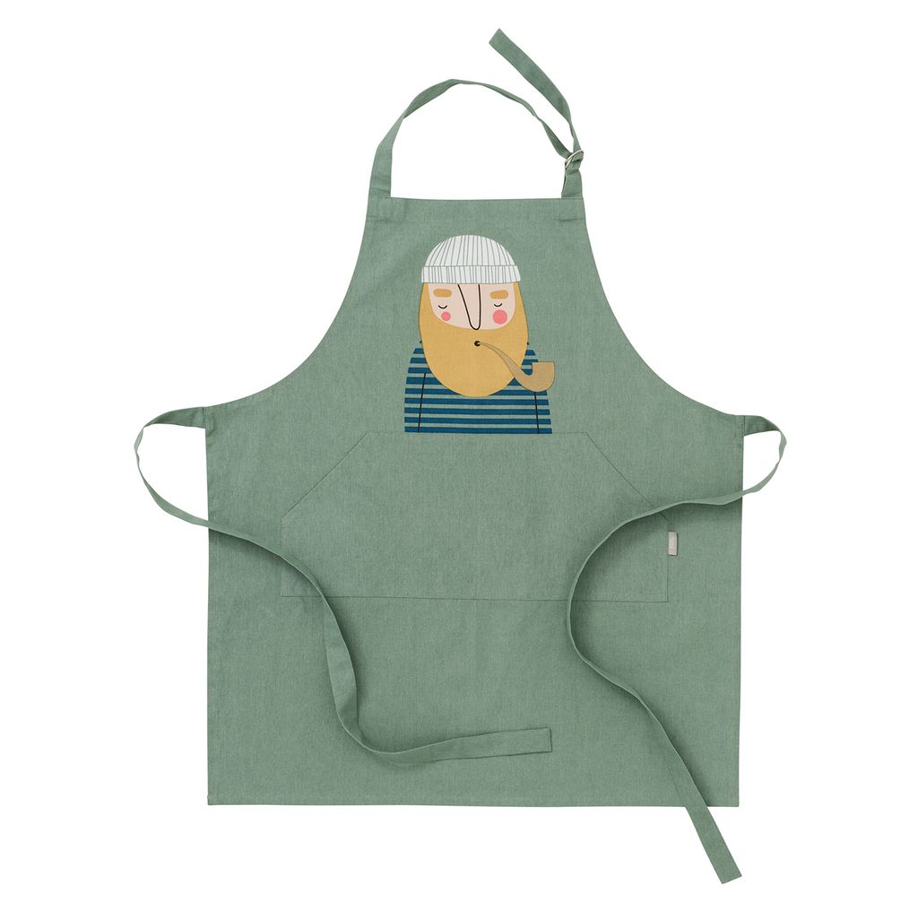 Ebbot kompisförkläde berättar gärna en historia till varje recept. Med sin stickade mössa, pipa och randiga tröja förkroppsligar Ebbot äventyr, värme och visdom i ett och samma uttryck. Den tryckta figuren på det dämpat gröna bomullstyget gör honom till en självklar kökskompis, särskilt för den som gillar att kombinera matlagning med storytelling.