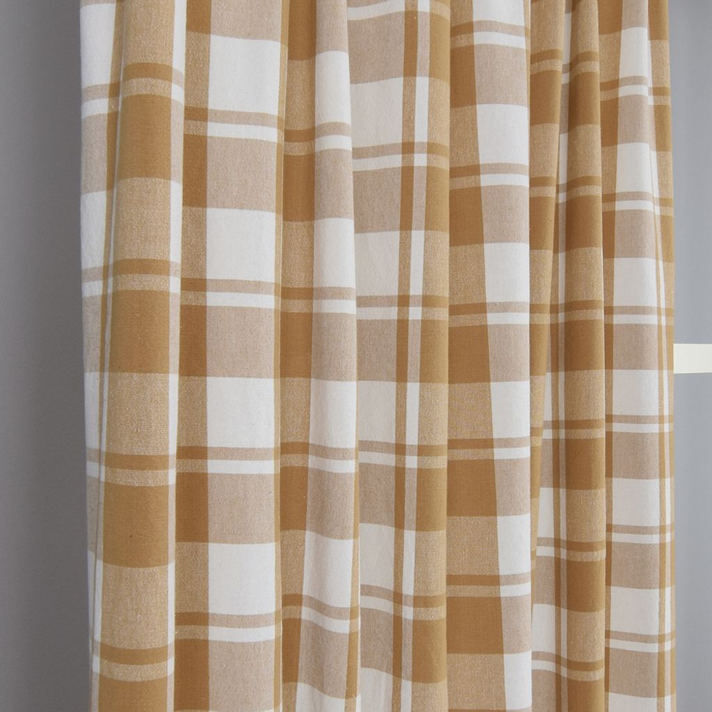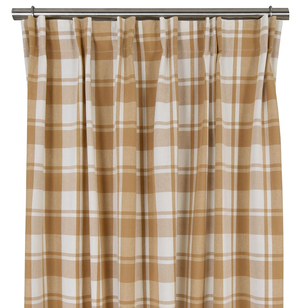 Klassiska rutiga gardiner i en beige/gul färgställning i bomull med en tvättat känsla i tyget.