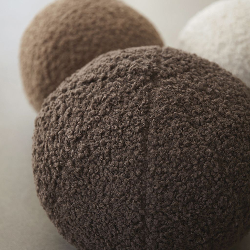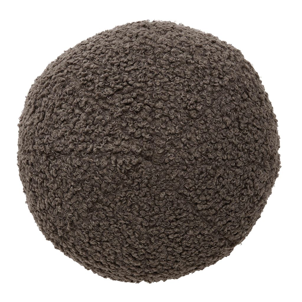 Rund brun sittpuff eller kudde med mjukt lockigt tyg. 30cm i diameter. STANDARD 100 by OEKO-TEX®