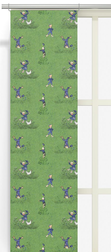 Beskrivning av Emils Glädjeskutt grön panelgardiner