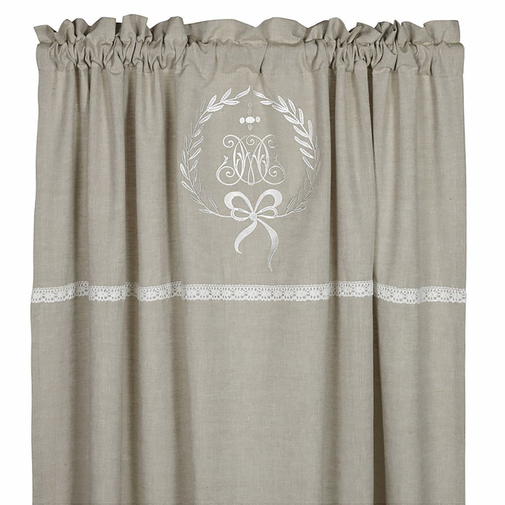 Emmy linne kanalgardiner med broderat monogram och spets