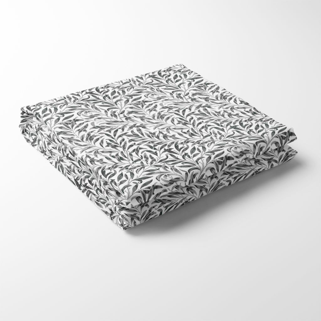 Elegant bordsduk i grått med tidlöst bladmönster i klassisk Arts & Crafts-stil. Tryckt i Spanien på 100% bomull – perfekt för att skapa en ombonad känsla vid middagsbordet.