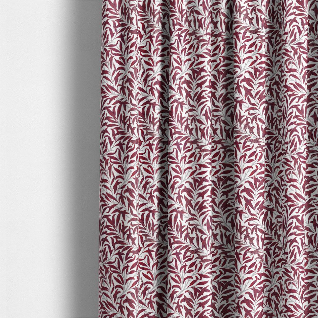 Beskrivning av Ester vinröd tyg – klassiskt bladmönster i vinrött