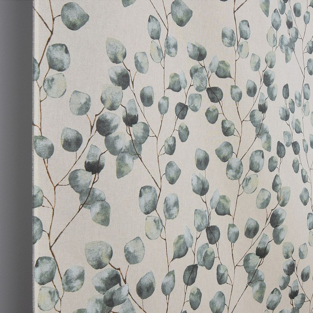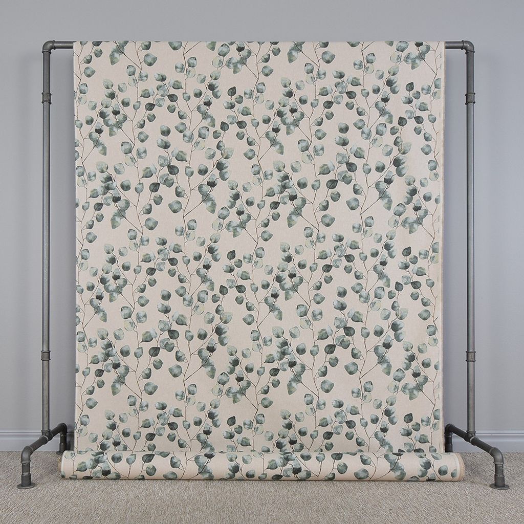 Tyg för gardiner och inredning med ett underbart mönster i Eucalyptus på linne färgad botten.