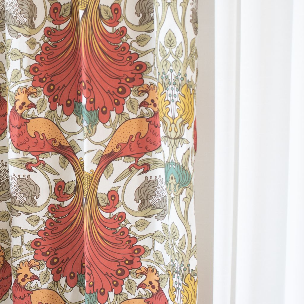 Eugenie digital tryckt tyg för gardiner och inredning med stora fåglar.