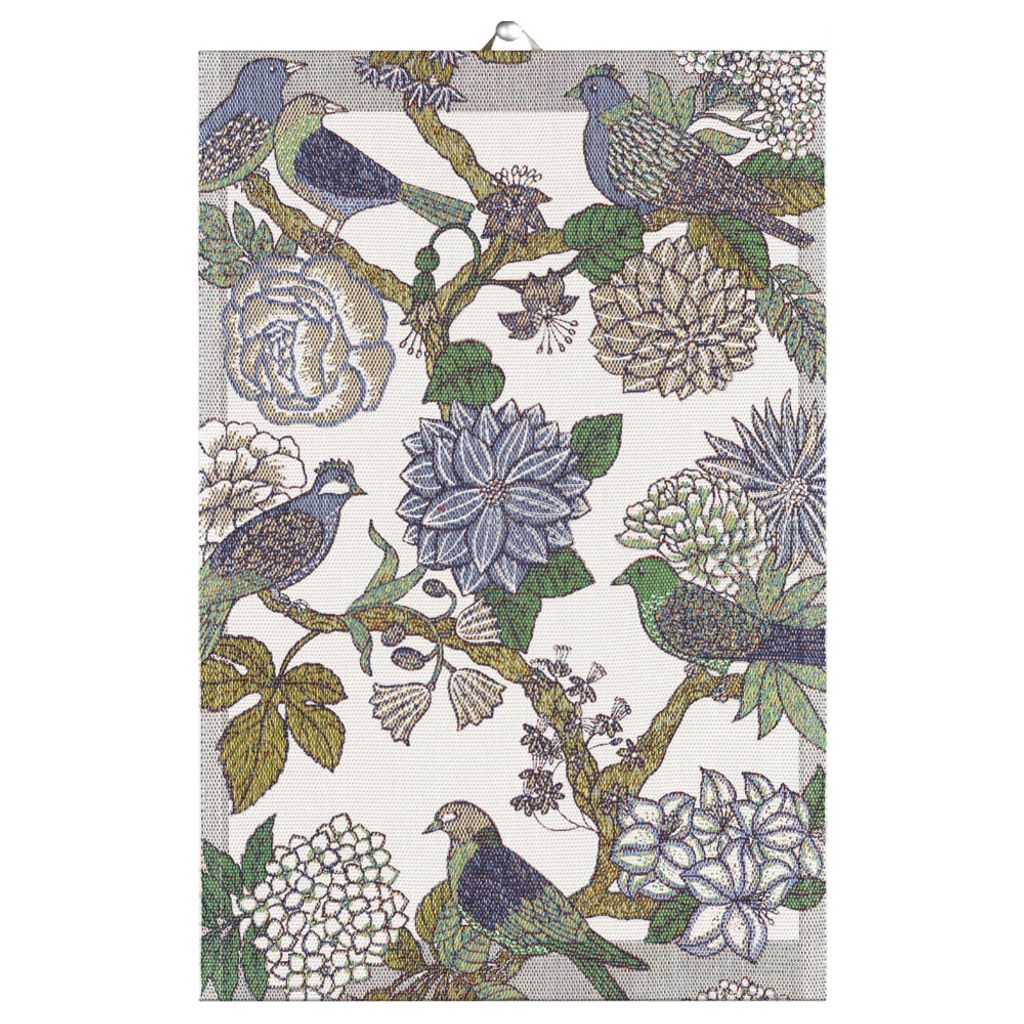 handduken som med sig naturens hem till dig. Med sitt fina fågel- och blommönster i blått och grönt, passar den perfekt när du vill torka händerna eller disken. Handduken är gjord i Sverige av ekologiskt material och är GOTS-certifierad, vilket är bra både för dig och miljön. Den är enkel att tvätta och håller sig fin länge.
