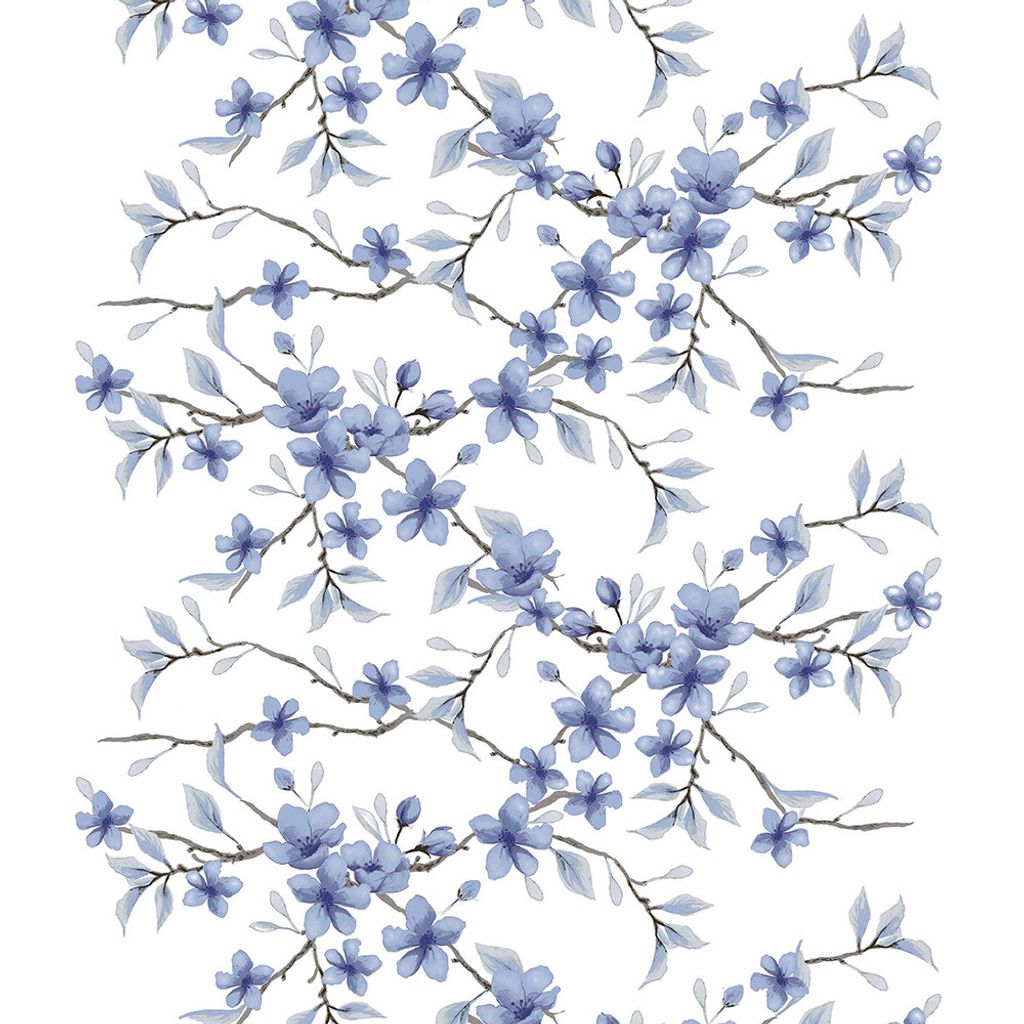 Vit botten med en blomstrande gren som sträcker sig rakt över tyget.