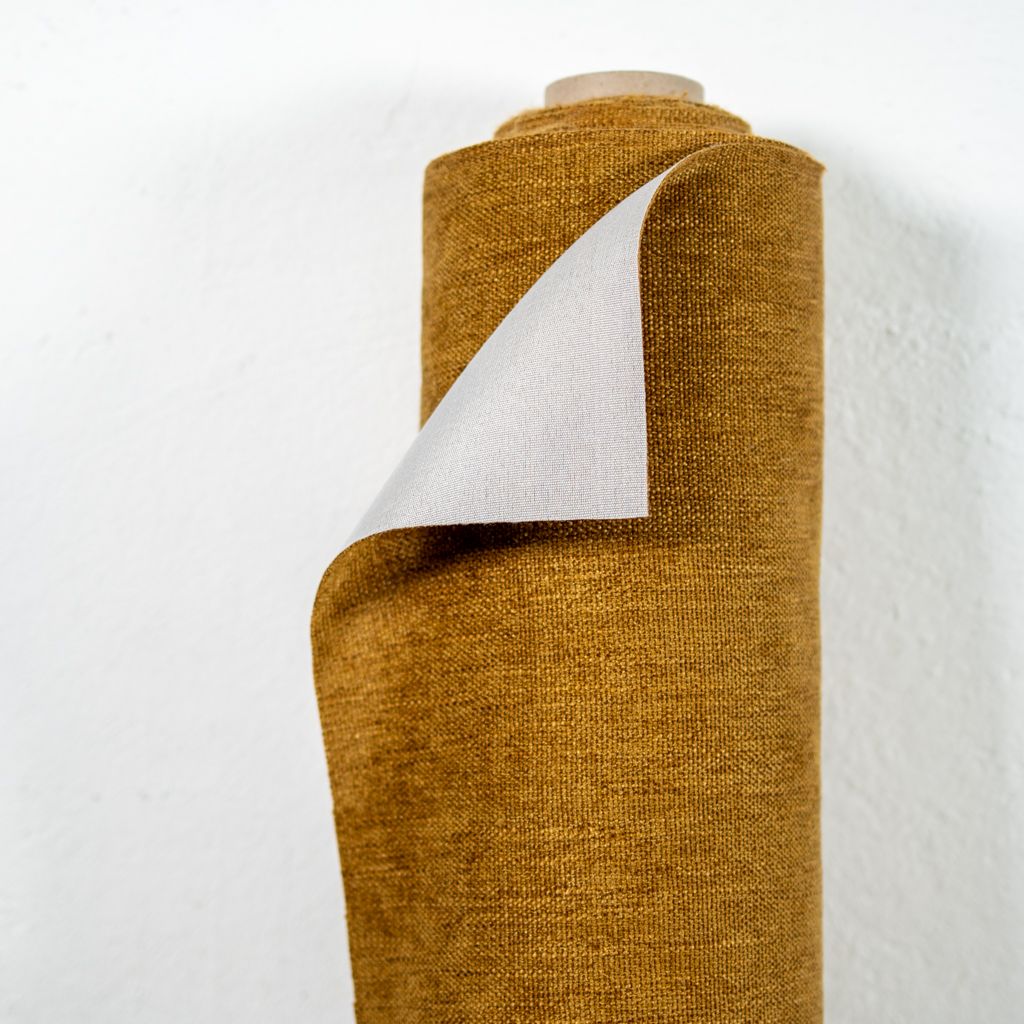 Fantasy Amber är ett ocra-guld färgat möbeltyg på metervara som erbjuder en mjuk känsla, snygg struktur och en melerad, multicolour effekt. Certifierat för icke-inflammabilitet och REACH-kompatibilitet.