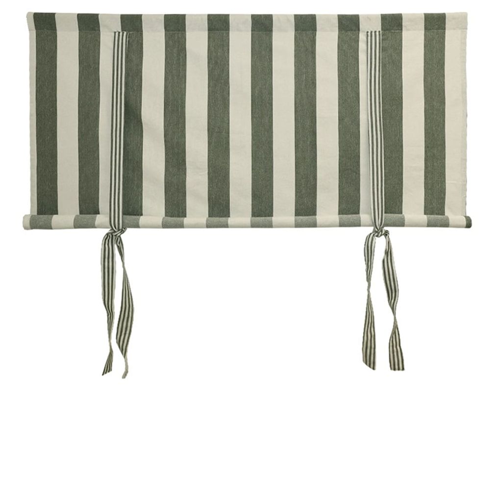 Med sin tidlösa randdesign fungerar hissgardinen lika bra året runt, och den grönvita färgskalan ger ett harmoniskt intryck som smälter fint in i naturinspirerade interiörer.