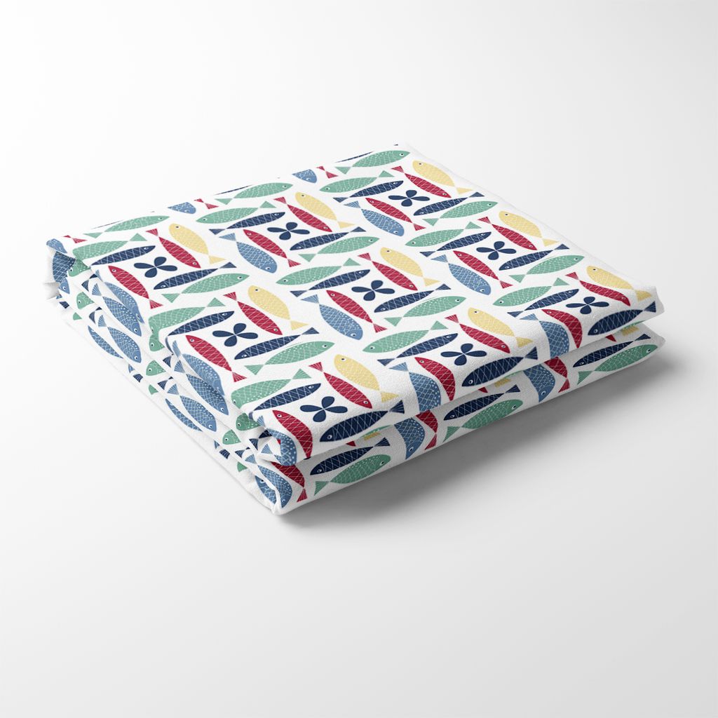 Fina fisken multi bordsduk kombinerar ett maritimt mönster med glada färger. Fiskar i rött, blått, grönt och gult simmar över den ljusa bakgrunden, vilket skapar en livfull och inbjudande känsla till bordet. Duken finns i 4 olika storlekar.