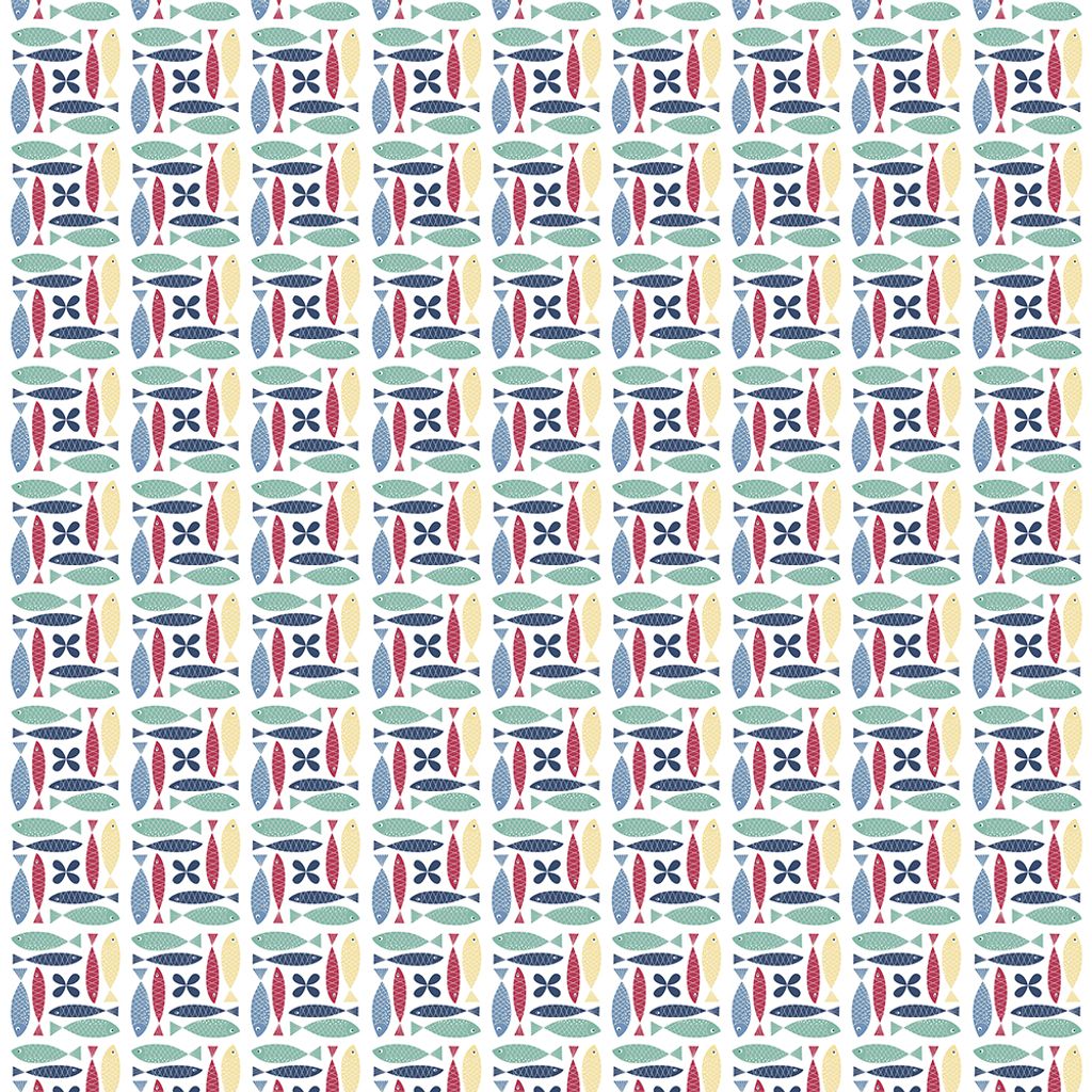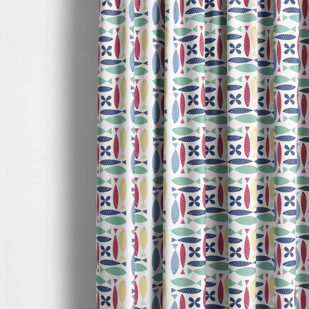 Fina fisken multi tyg kombinerar lekfull design och retro känsla med ett mönster av stiliserade fiskar i olika färger. Perfekt för gardiner, kuddar och andra inredningsdetaljer som ger rummet liv och färg.