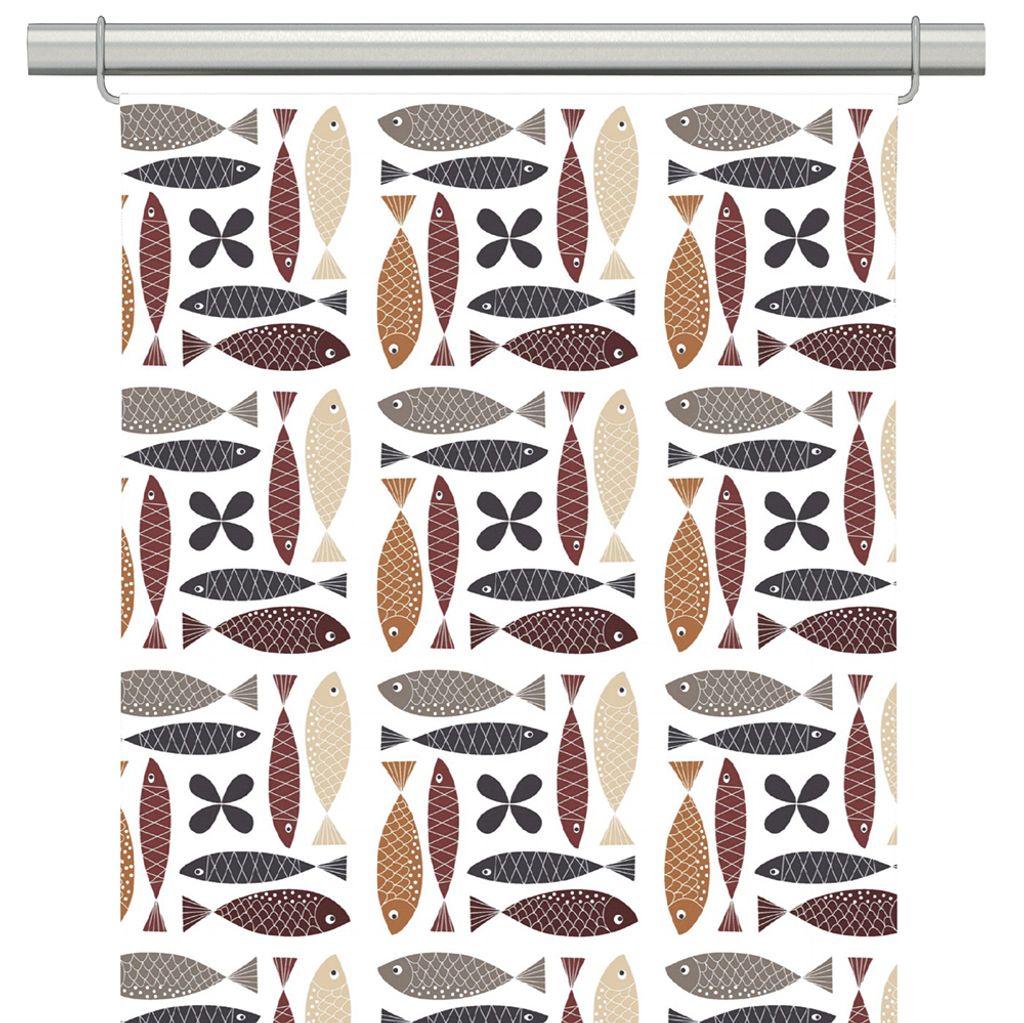 Fina fisken rost panelgardiner har ett lekfullt fiskmönster i varma rost-, beige- och grå toner. Ett retro mönster som ger rummet liv och passar lika bra i kök som vardagsrum.