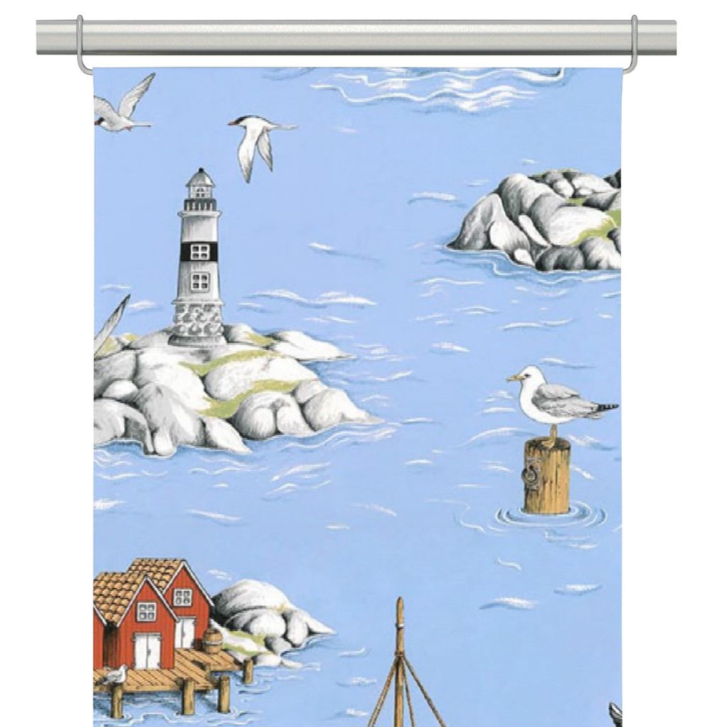 Beskrivning av Fiskeskär ljusblå panelgardiner