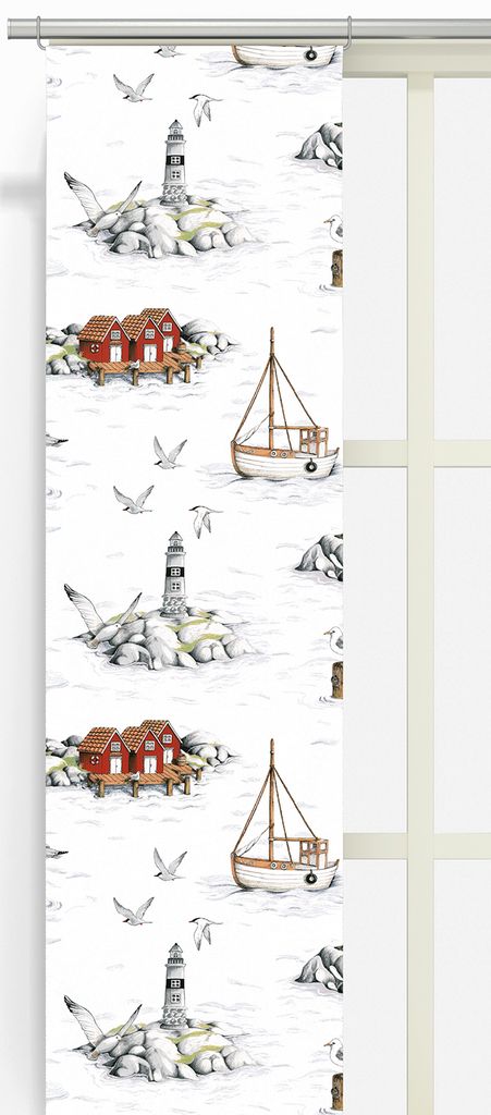 Beskrivning av Fiskeskär vit panelgardiner