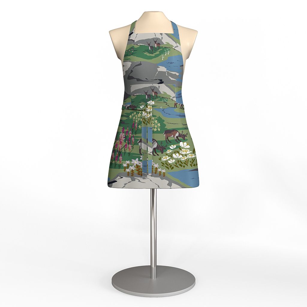 Förkläde sytt i Arvidssons fina bomullskvalité. Mönstret Fjällänglar.