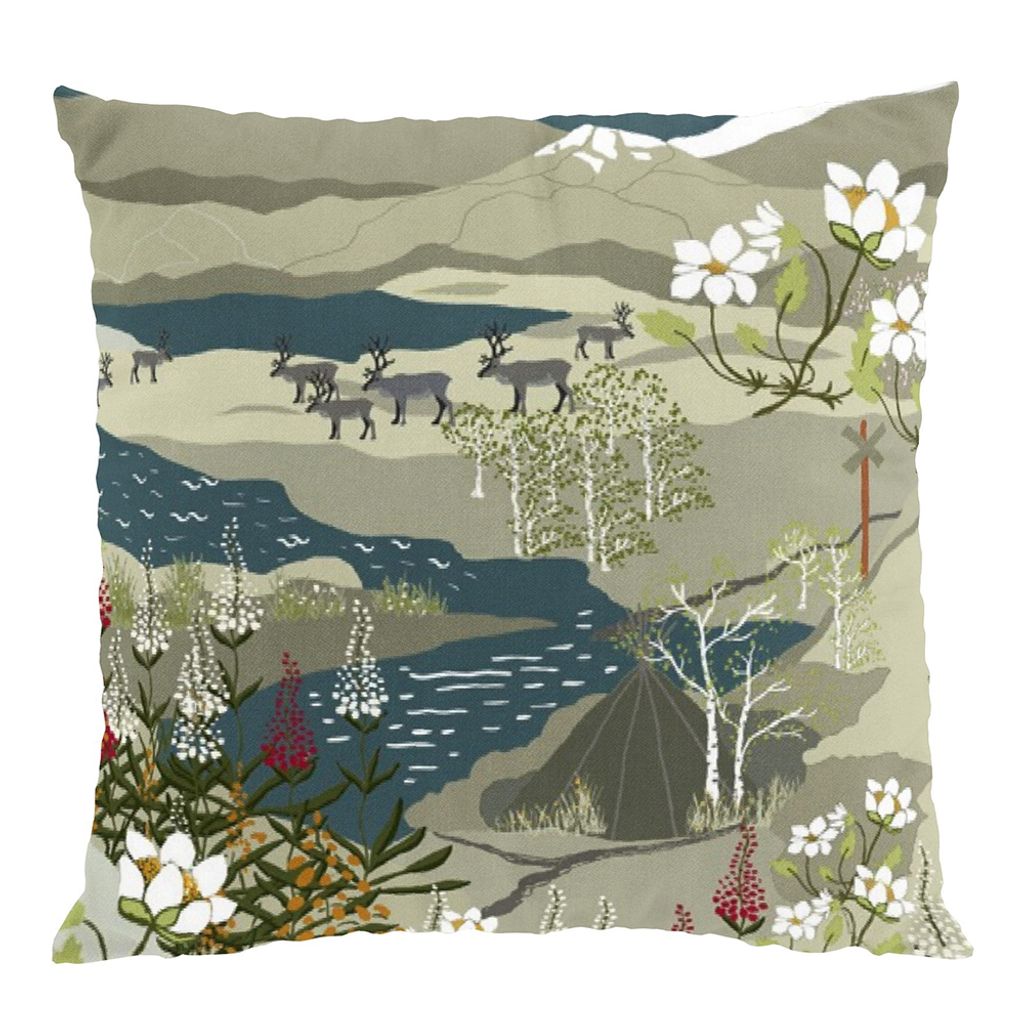Ett kuddfodral i tyget Fjällvandring beige-blå från Arvidssons textil med ett naturmotiv, 47x47cm. Kuddfodral tas 3st på tygets bredd och mönstret kan därför skilja sig åt. Innerkudde ingår ej!
