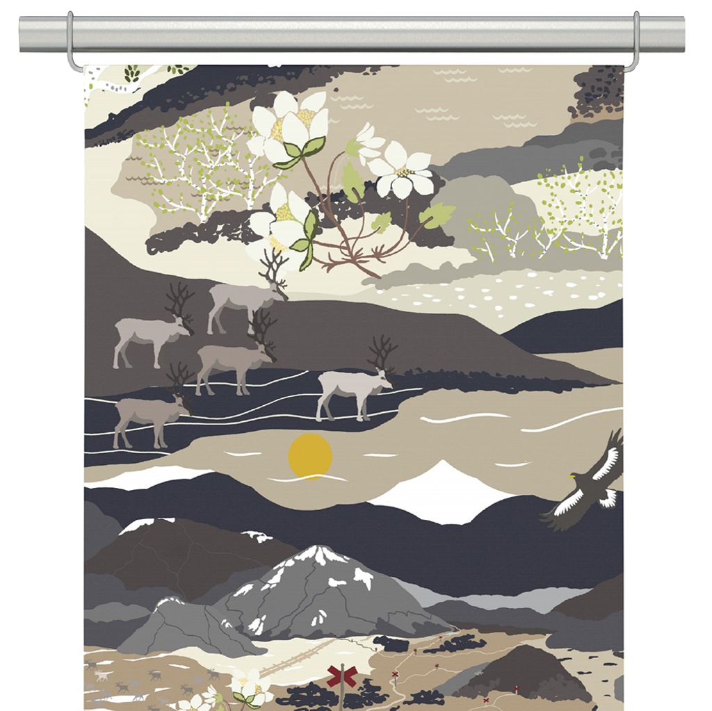 Fjällvandring beige panelgardiner med fjällmotiv