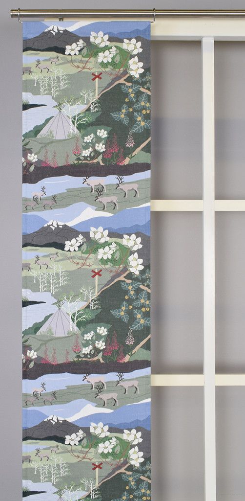 Fjällvandring grön från Arvidssons textil. Panelgardinerna tas 3st på tygets bredd och kan därför skilja sig åt i mönstret.