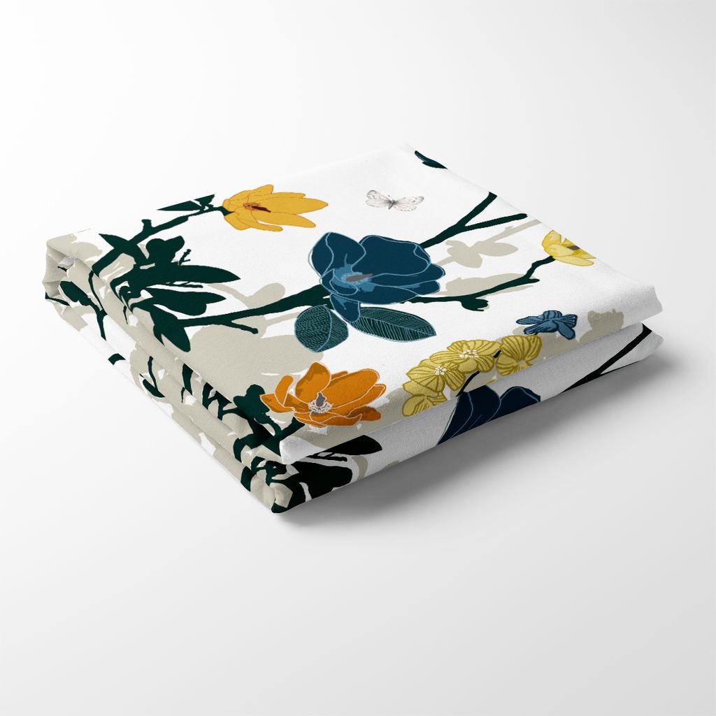 Fjärilsträdgården blå-gul bordsduk är en detaljrik och konstnärlig duk som fångar känslan av en blommande sommaräng. Mönstret är designat med en elegant komposition där blommor och fjärilar sträcker sig från sidorna och gradvis rör sig in mot mitten av duken. Detta skapar en naturlig inramning av bordet och ger en vacker helhetskänsla. De djupa blå tonerna blandas med soligt gult och friskt grönt, vilket gör duken till en stilfull och inbjudande detalj i både vardagsrum och matsal. Perfekt för såväl vardagsmiddagar som festliga tillställningar.