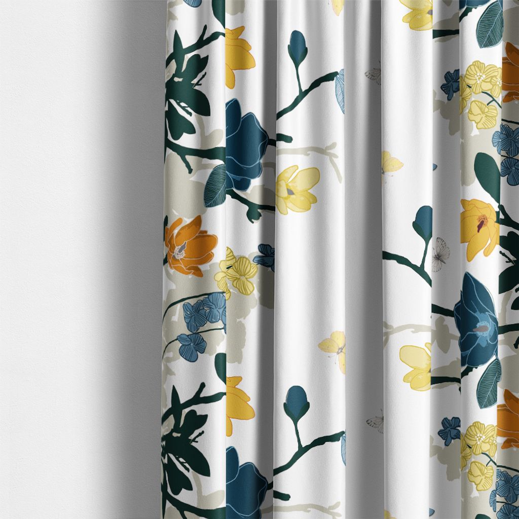 Fjärilsträdgården blå-gul tyg – Mönster som ramar in ditt hem
