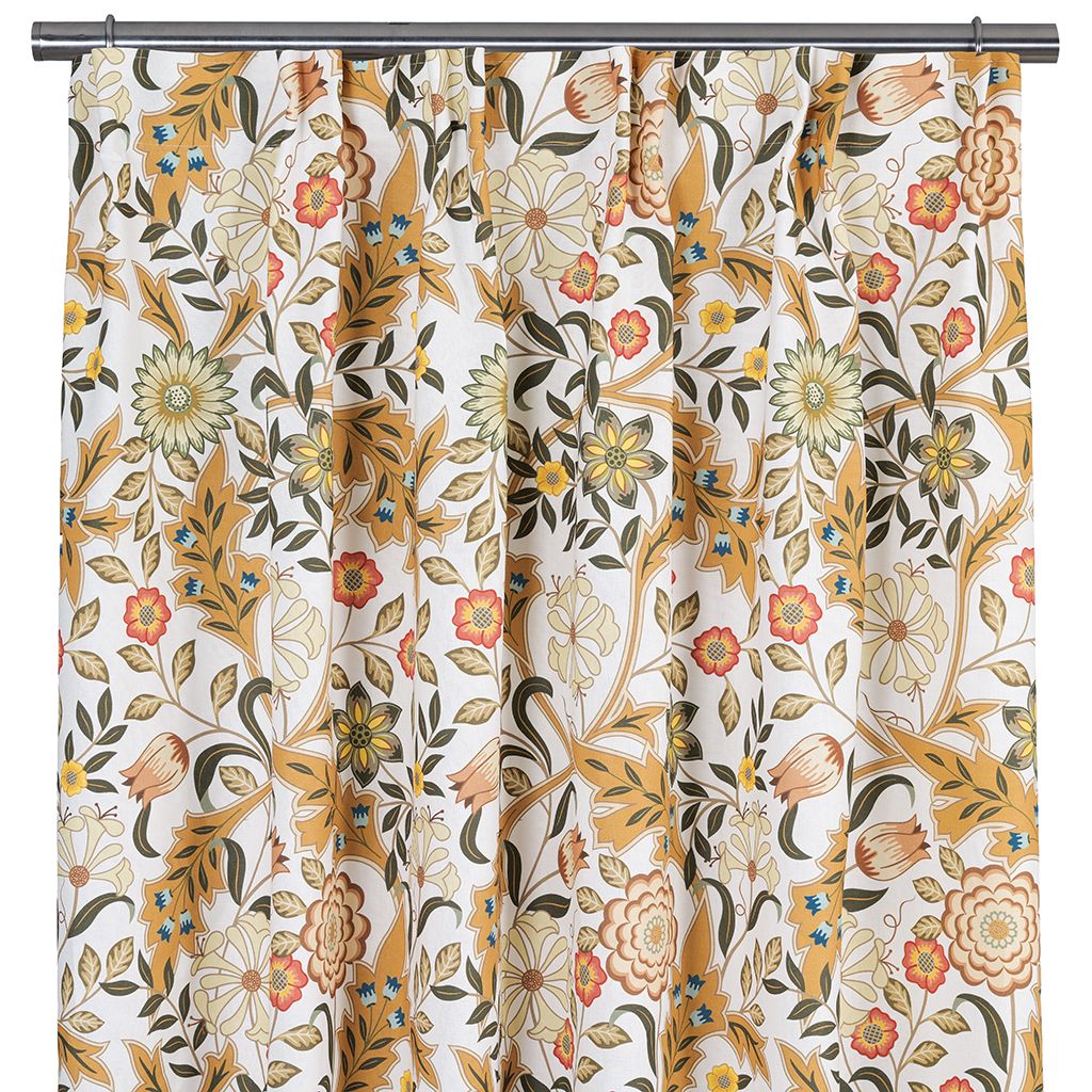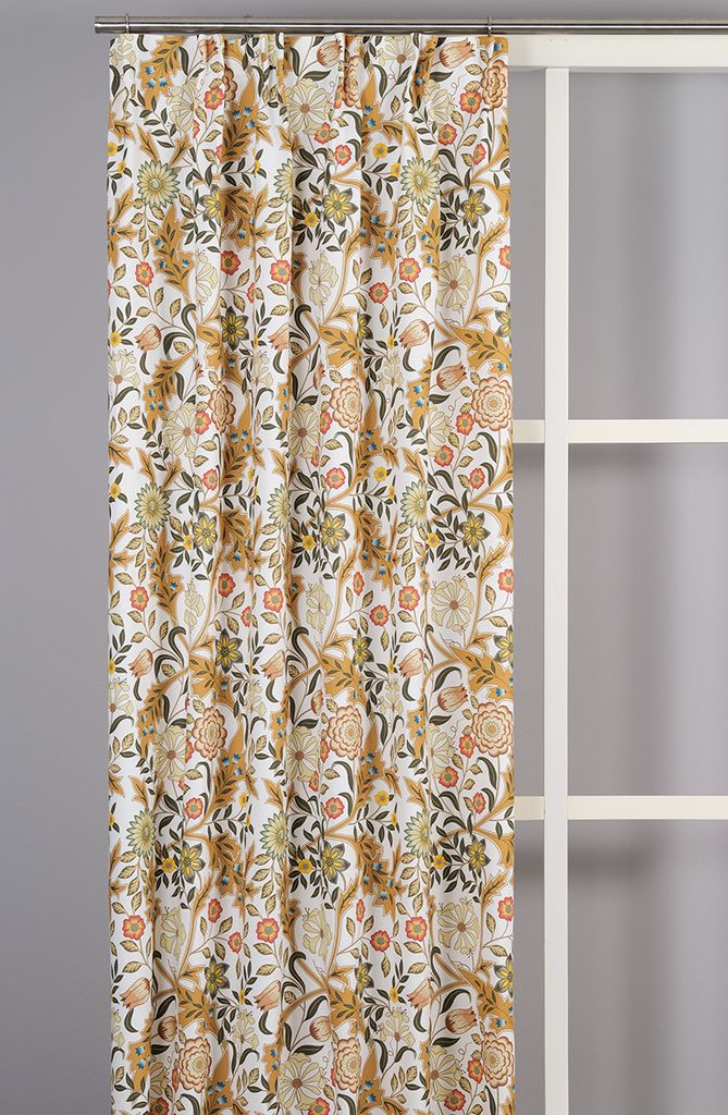 Flora ockra gardiner är en stilfull inredningsdetalj som kombinerar klassiskt mönster med varma, inbjudande färger. Det dekorativa blommönstret i ockra, grönt och mjuka naturtoner skapar ett levande uttryck som samtidigt känns harmoniskt och balanserat.