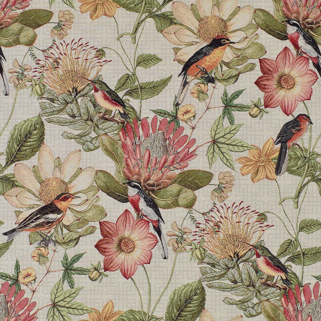 Beskrivning av Floral botanic bird möbeltyg