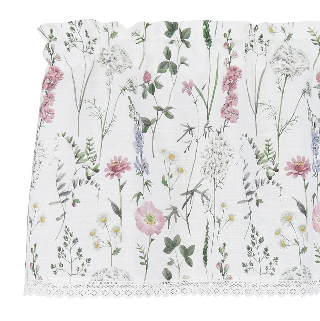 SISTA BITEN!! Gardinkappa på metervara med kanal och rynkhuvud. Vit botten med ett underbart blommönster.Nertill på kappan är det påsytt en fin spetskant