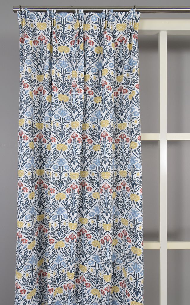 Tryckt på en fin bomullsvara som hänger fint som gardiner.