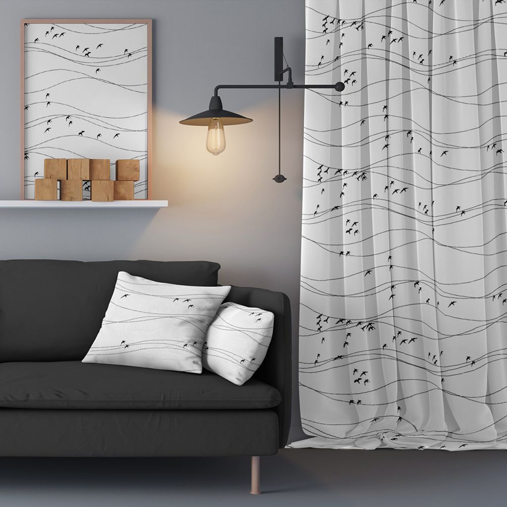 Gardin och inredningstyg för hemmet och kontoret. Mönstret är tryckt på Arvidssons Textils klassiska bomullsvara