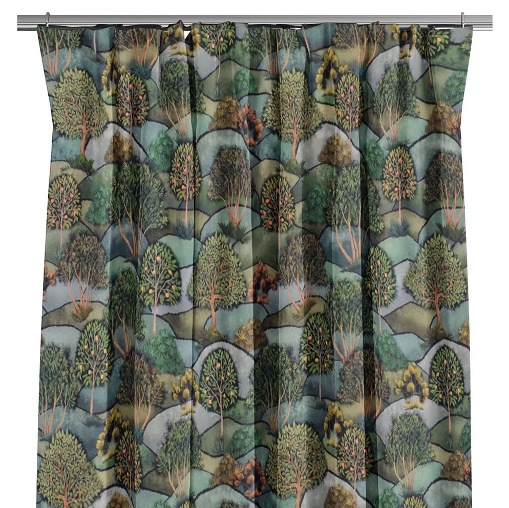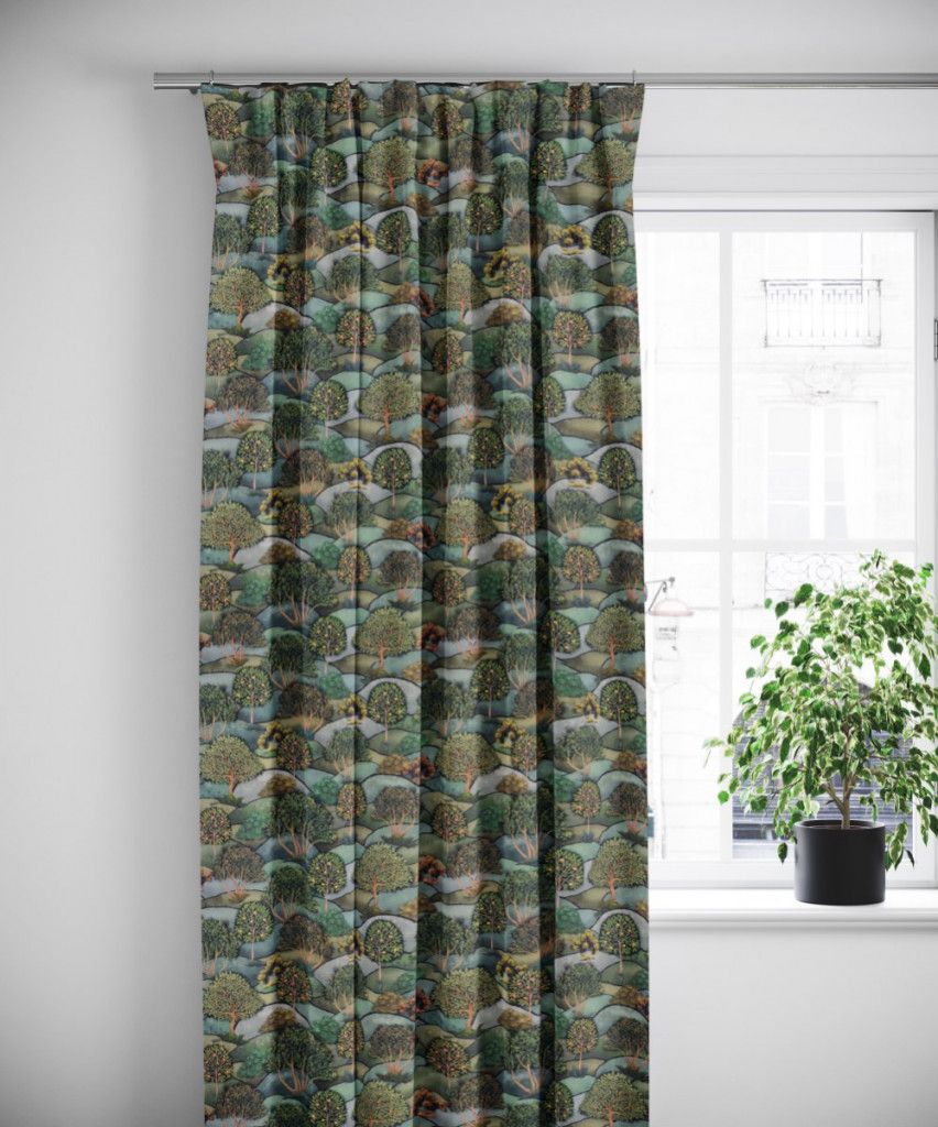 Multibandslängder i 2-pack med mönster utav ett grönt landskap med kullar och träd. Finns i måtten 265cm långa. Ouppfållade med overlock nedtill