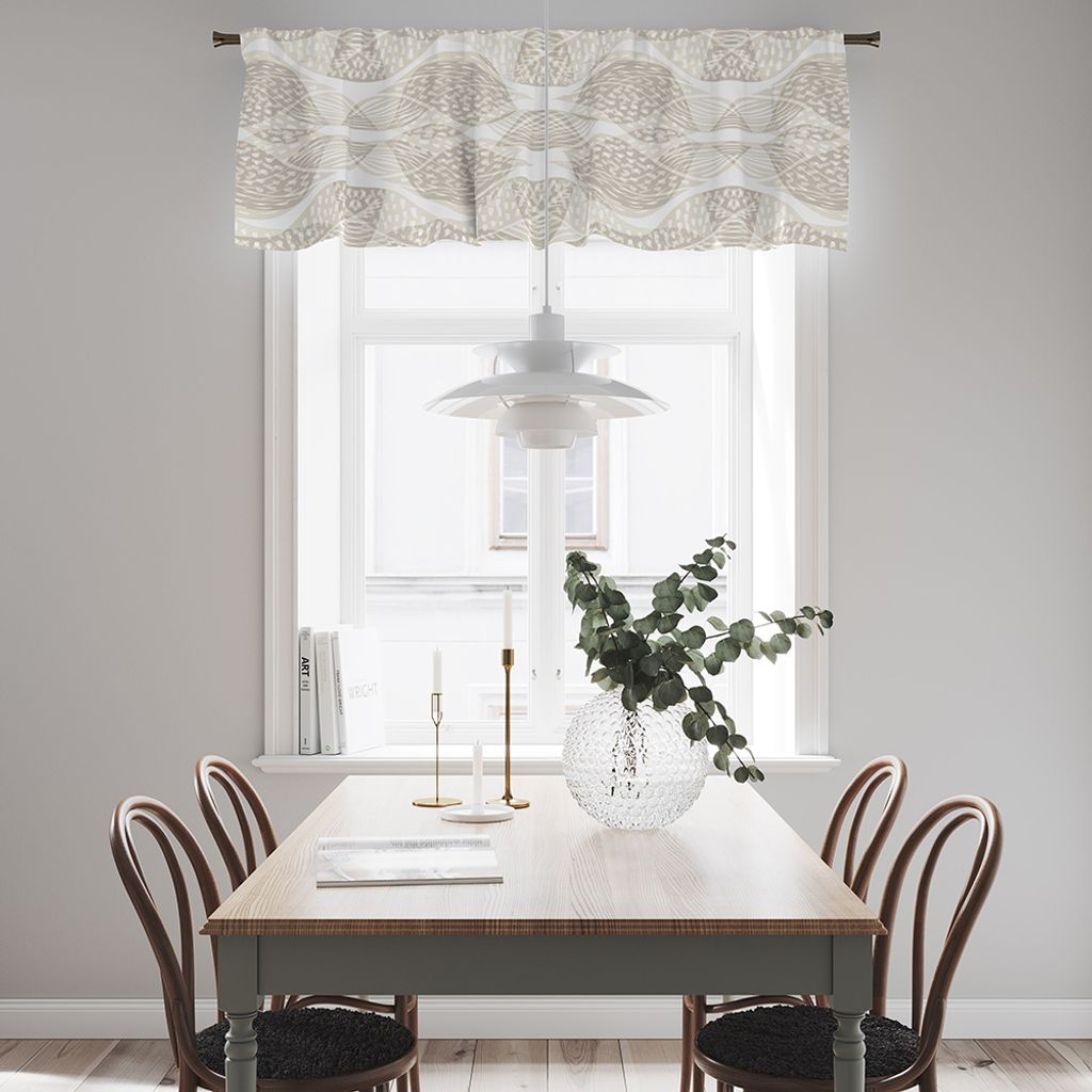 Gardinkappa på metervara med multiband. Ett mjukt och stilrent mönster i beige och sandtoner. Kappan är 55cm hög.
