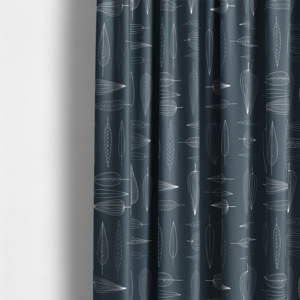 Metervara i bomull med blått frostbladsmönster – ett modernt och lugnt tyg från Arvidssons Textil. Passar till gardiner, dukar eller kuddfodral.
