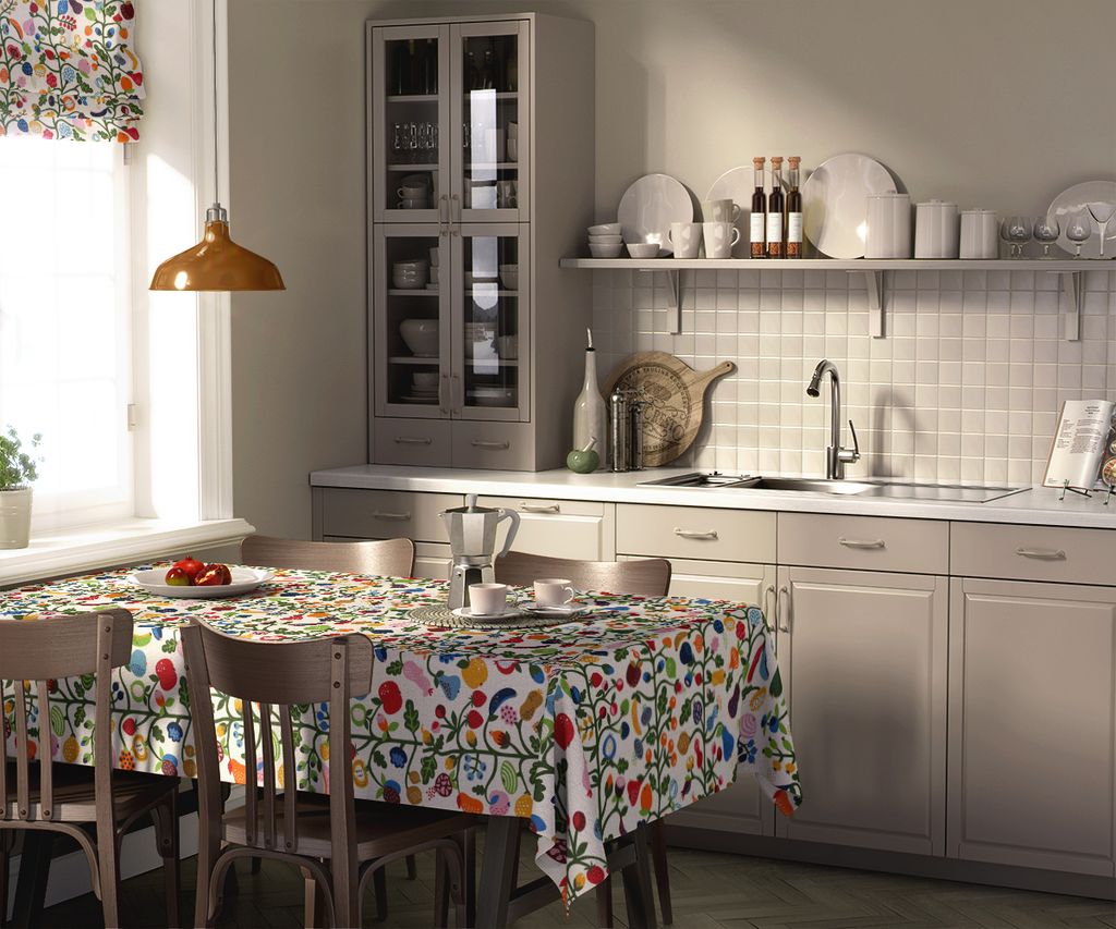 Fruktträd multi bordsduk bjuder in naturens skafferi direkt till ditt hem. Med ett lekfullt och färgsprakande mönster av frukter, bär och grenar på en ljus botten skapas en livlig och varm atmosfär vid matbordet. De rika färgerna och detaljerna ger duken en unik charm som gör den till ett blickfång i köket eller matsalen. Oavsett om du dukar för en vardagsmiddag eller en festlig måltid blir denna duk ett glädjefullt inslag i hemmet.