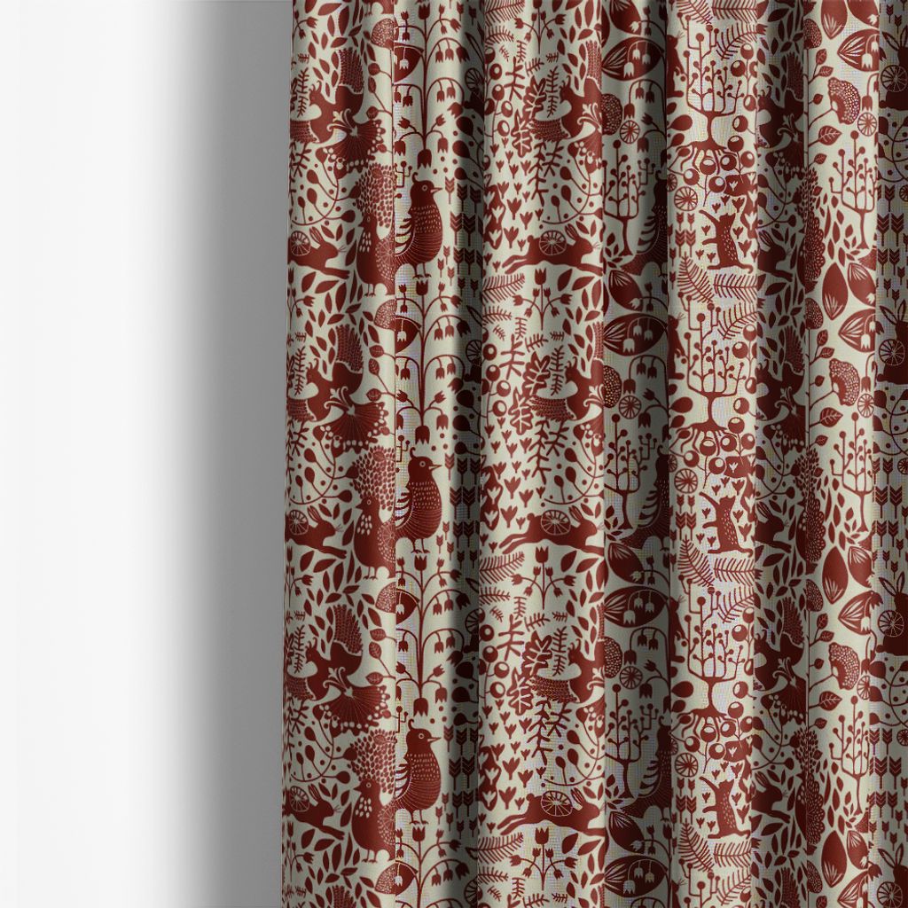 Fýri beige/röd gardin kombinerar skandinavisk naturkänsla med tidlös design. Mönstret består av ett detaljrikt motiv med djur och växter i harmoniska nyanser av rött mot en beige botten – ett uttryck som känns både levande och rofyllt. Gardinen tillför värme, karaktär och en känsla av hantverk till ditt hem, oavsett om du vill skapa en mysig stämning i vardagsrummet, sovrummet eller köket.