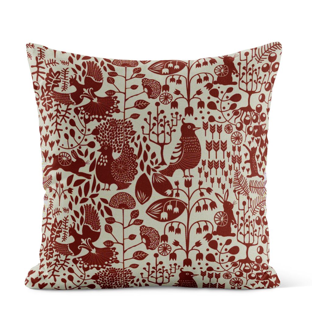 Fýri beige-röd kuddfodral är ett elegant val för dig som vill förhöja din inredning med en touch av nordisk natur. Kuddfodralets detaljrika mönster, som pryds av skogsdjur och växter, framträder vackert mot den beige bakgrunden och skapar en varm kontrast med de röda detaljerna. Den stilfulla linnelooken ger kuddfodralet en rustik känsla och bidrar till en naturlig struktur som passar utmärkt i såväl moderna som klassiska miljöer. Placera Fýri kuddfodral i soffan, sängen eller fåtöljen för att ge rummet en ombonad och stilfull atmosfär.