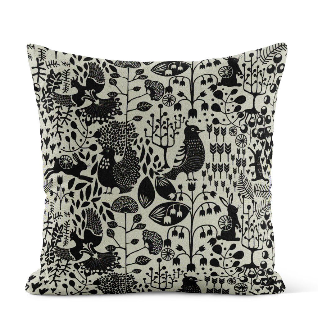 Fýri beige-svart kuddfodral är ett harmoniskt tillägg till din inredning, med ett vackert mönster inspirerat av naturen. Mönstret, som kombinerar detaljerade växter och skogsdjur, skapar en unik kontrast mot den beige bakgrunden och bidrar till en stilren, skandinavisk atmosfär. Linnelooken ger kuddfodralet en naturlig struktur och känsla, vilket gör det både visuellt tilltalande och praktiskt. Placera Fýri kuddfodral i din soffa, fåtölj eller säng för en omedelbar uppgradering av rummet.