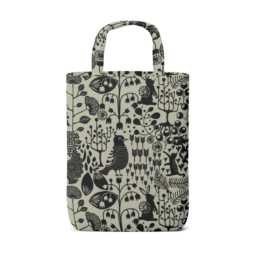 En tygkasse i svart med naturinspirerat mönster, tryckt på ett tyg med linnelook. Perfekt för vardagsanvändning med en stilfull känsla. Bilden visar endast exempel på hur kassen kan se ut. Det kan skilja sig beroende på hur tyget är tillklippt.