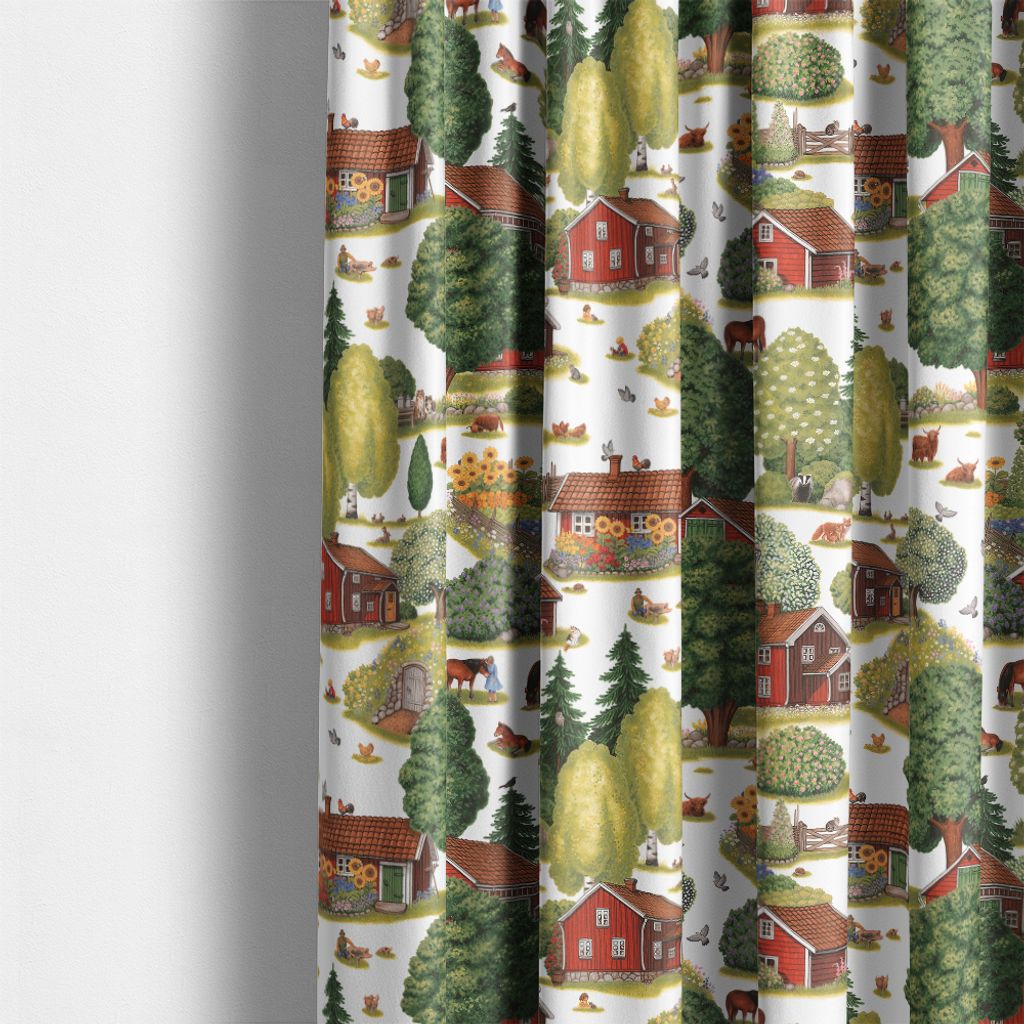 Ginkalunda grön-röd gardiner för tankarna till lantlig idyll med sitt detaljrika mönster av röda stugor, blommande trädgårdar och lummiga träd. Perfekta för att skapa en ombonad och charmig känsla i hemmet.
