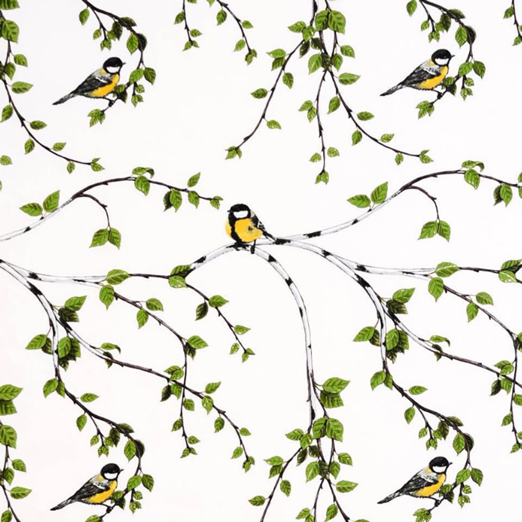 Gardin och inredningstyg för hemmet och kontoret. Mönstret är tryckt på Arvidssons Textils klassiska bomullsvara. Gardintyg med björkar och talgoxe